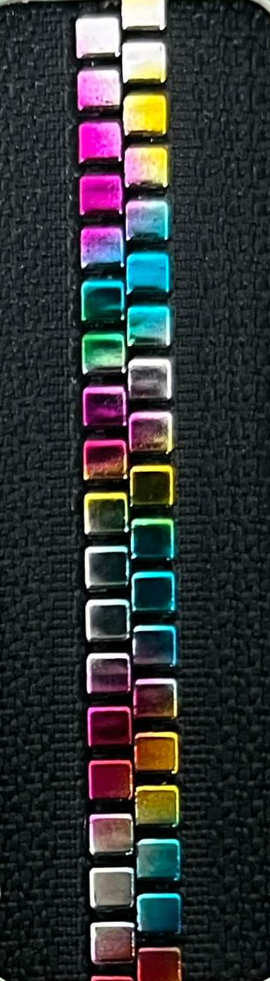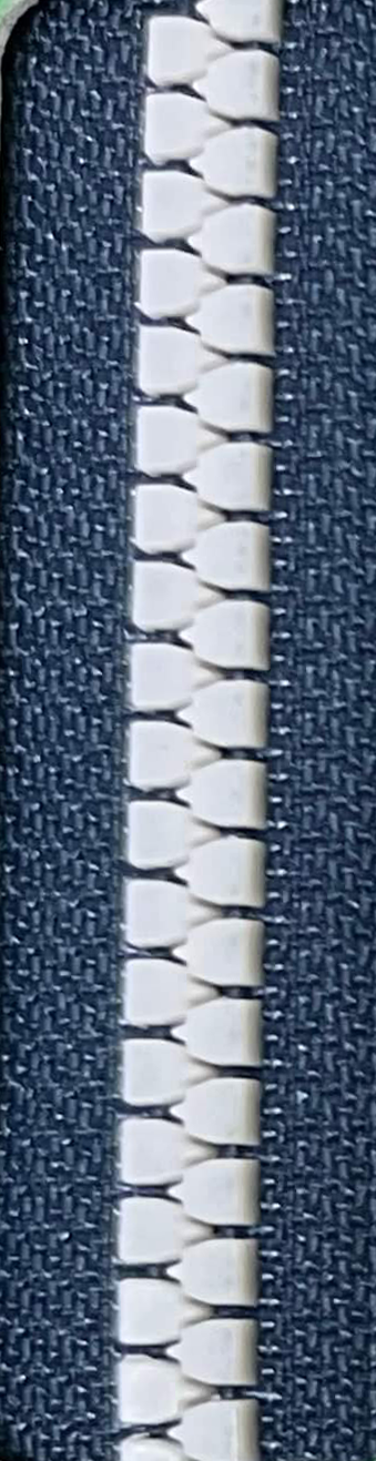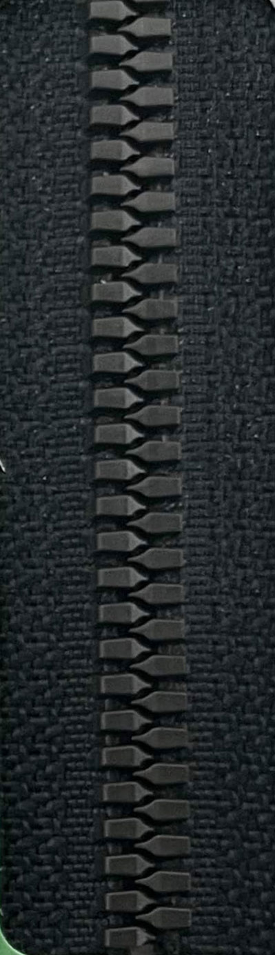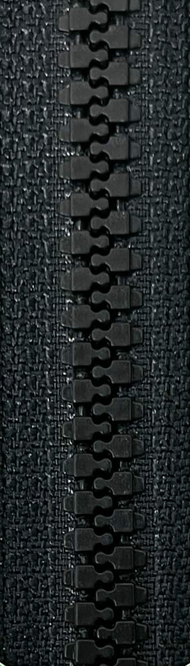 热可塑性和性树脂的模具喷出而制作的胶牙拉链,因链齿咬合牢固,所以可以承受较大的荷重,其触感与织物一样柔软。可以根据不同喜好,选择链齿与布带不同的颜色,例如:怀古情调的黄铜色、金色、银色等金属类色彩及荧光色彩等。
